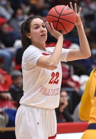 - 10.7 points, 3.1 boards, 1.3 assists, .466 FG & .385 “3” (St. Francis ’22)